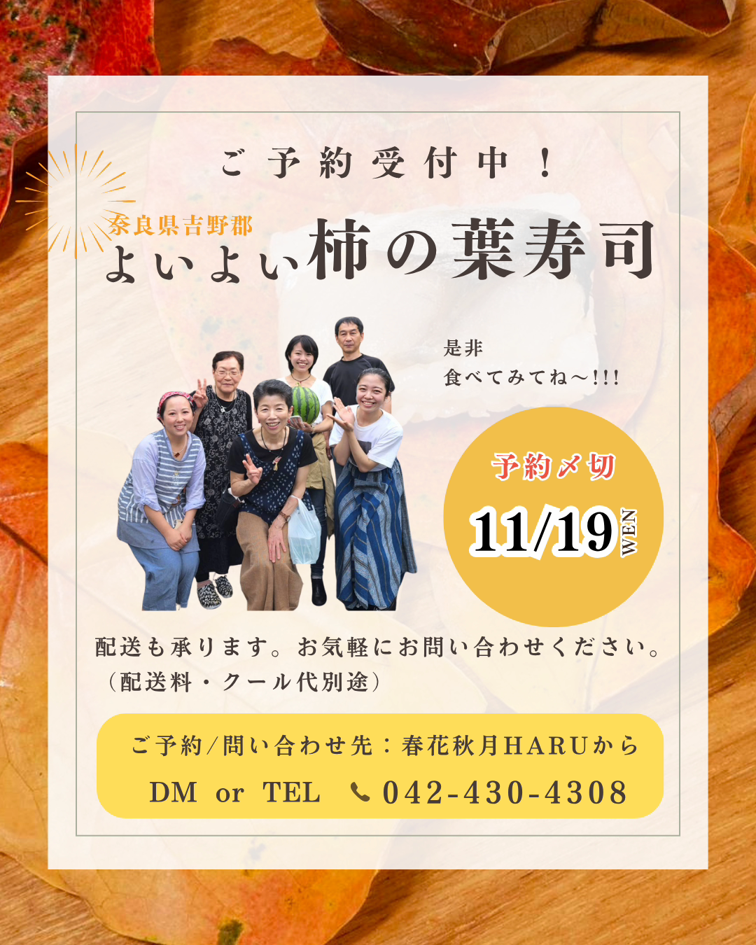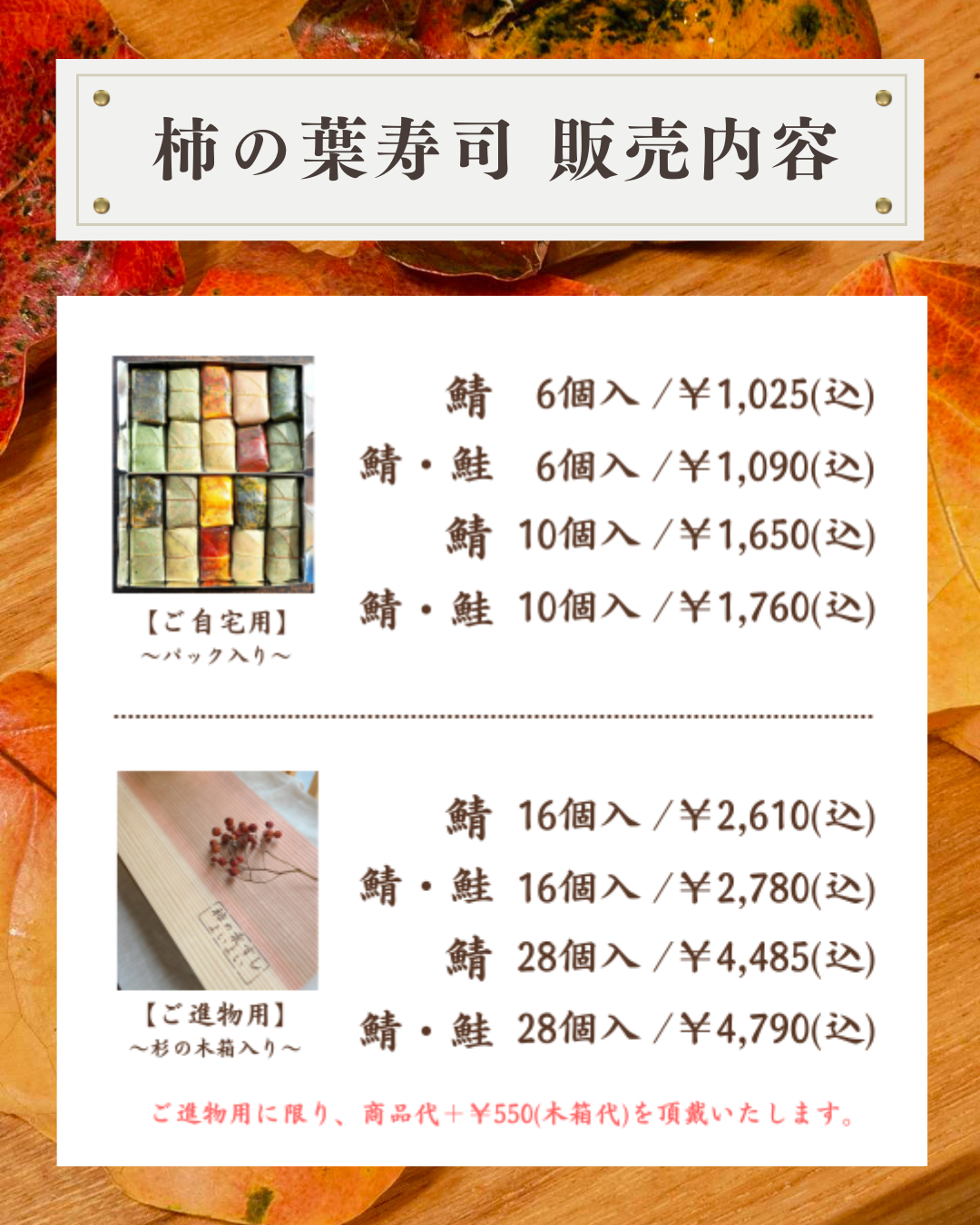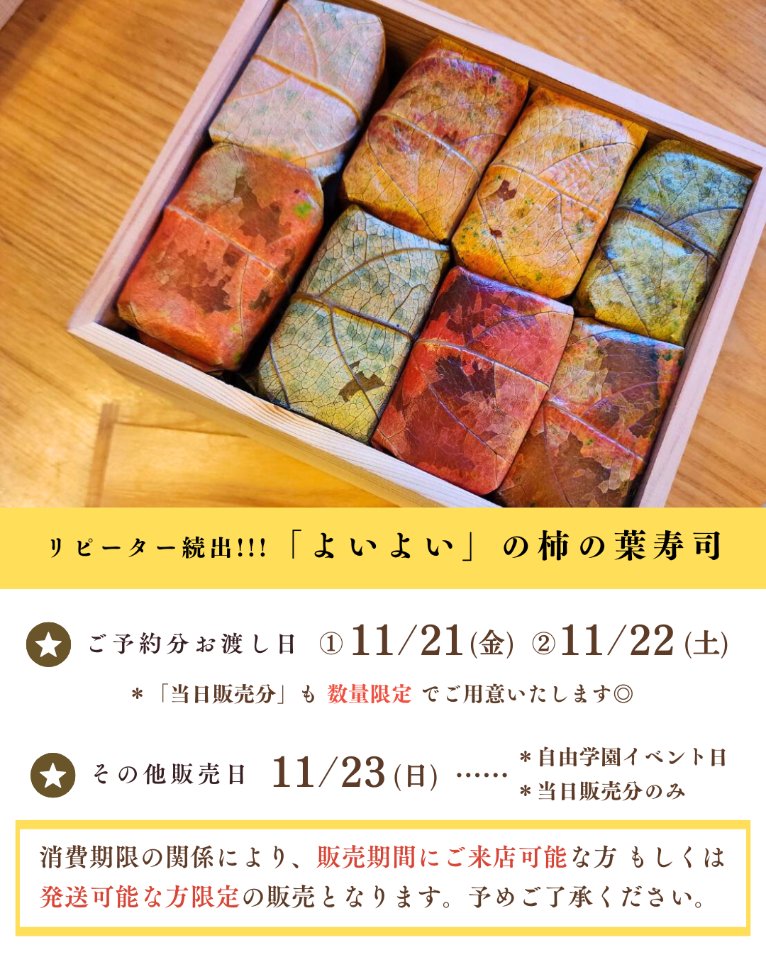 奈良県名物【柿の葉寿司】秋の限定販売のお知らせ