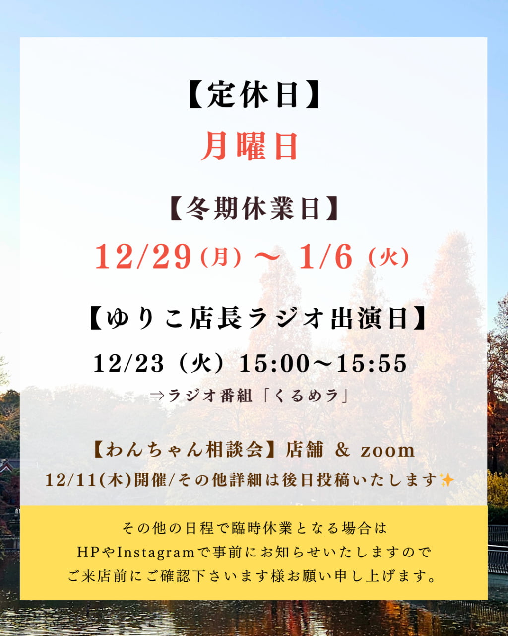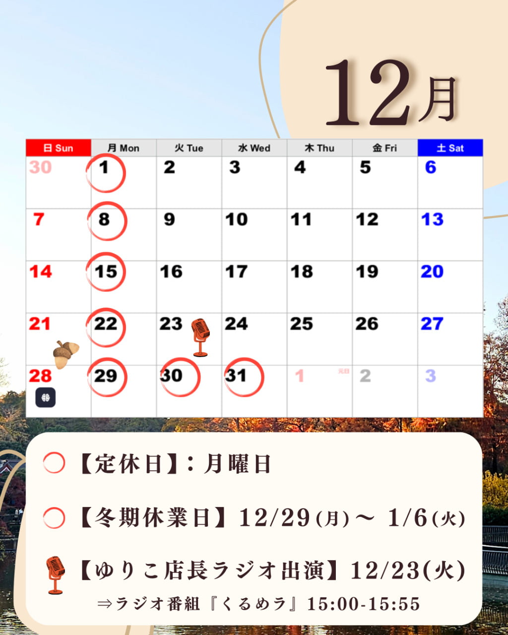 【12月】営業日のお知らせ