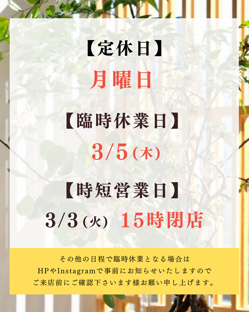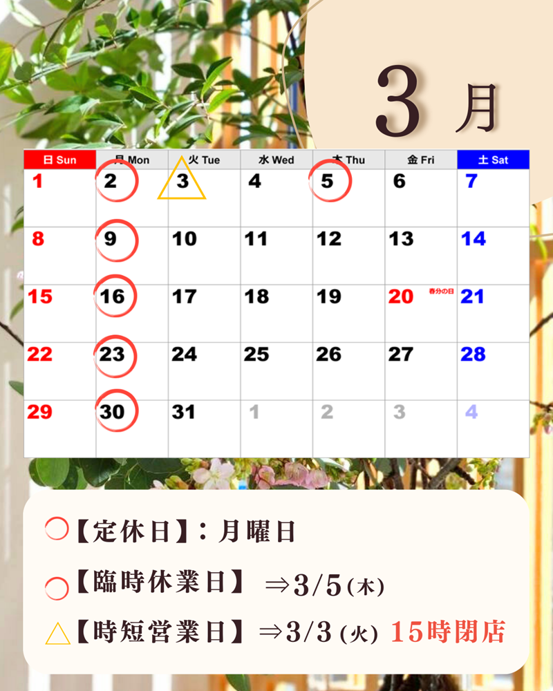 ◎3月 営業日のお知らせ・春のつぶやき◎
