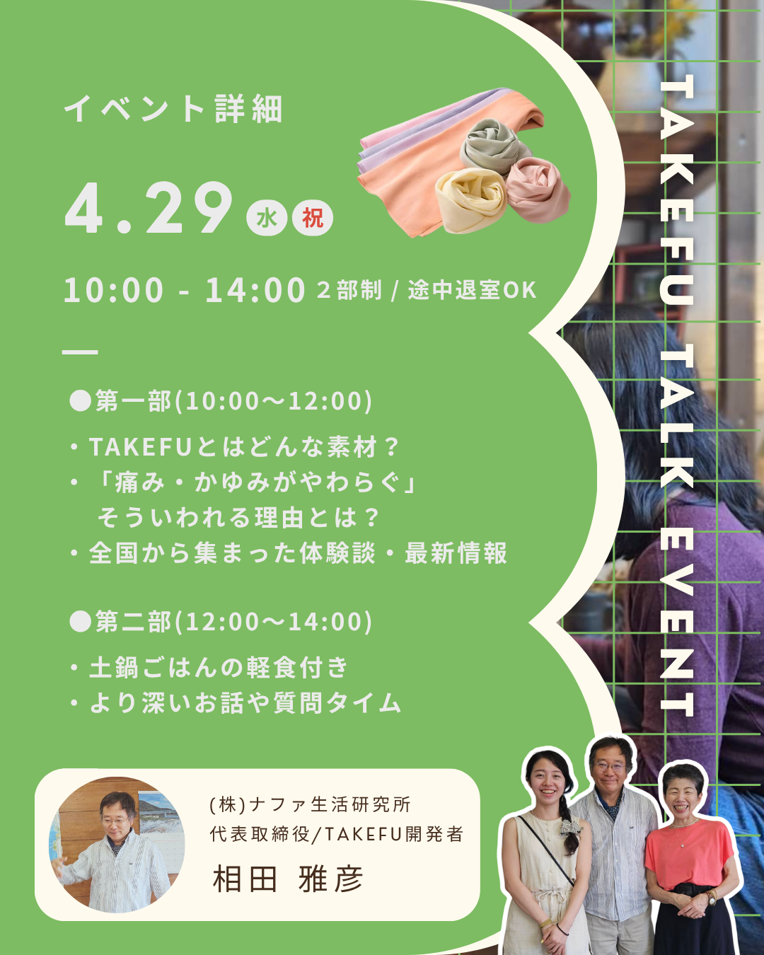 ご参加希望の方は、電話、メール、公式LINEより「たけふ」とお伝えください!