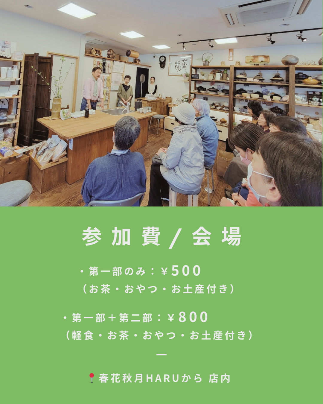 (第一部のみ:¥500(お茶・おやつ・お土産付き))